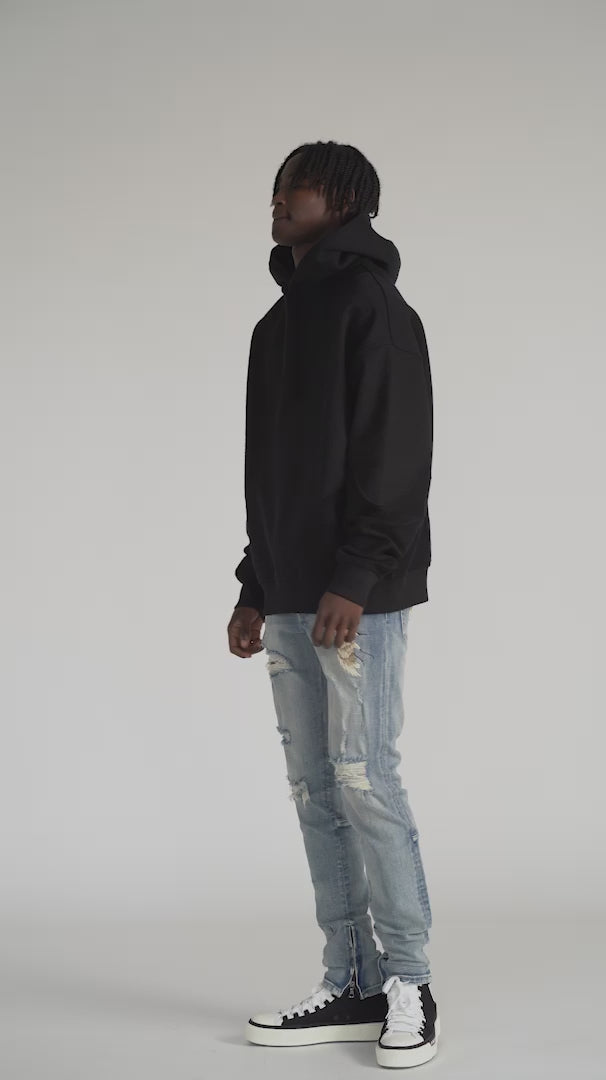 Introducing the Split Cut And Sew Hoodie, a testament to our commitment to innovative design and sustainable fashion. Expertly crafted from our signature heavyweight diagonal loopback organic cotton, this hoodie sets a new standard for luxury streetwear. The hoodie features a unique design twist: its center is ingeniously split diagonally, with a panel showcasing the reverse side of the fabric on one half. This thoughtful detail not only adds a dynamic visual element but also exposes the beauty of our signature diagonal loopback threads, offering a soft-touch texture that is both visually appealing and pleasant to the touch.