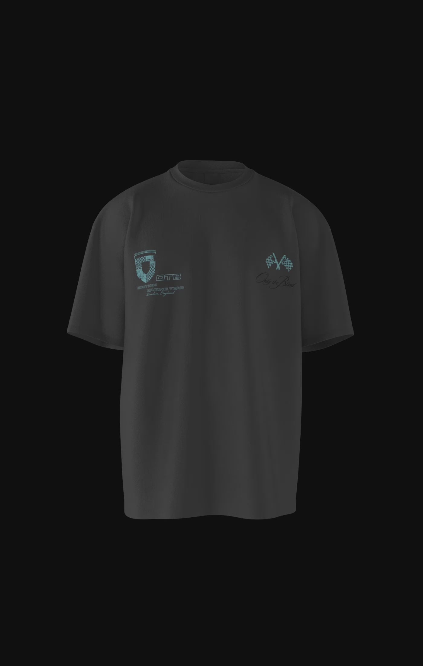 Dieses graue Die Variante des Motorsport-T-Shirts verfügt über ein fesselndes hellblaues Siebdruck-Artwork, das eine Hommage an die aufregende Welt des Motorsports darstellt.