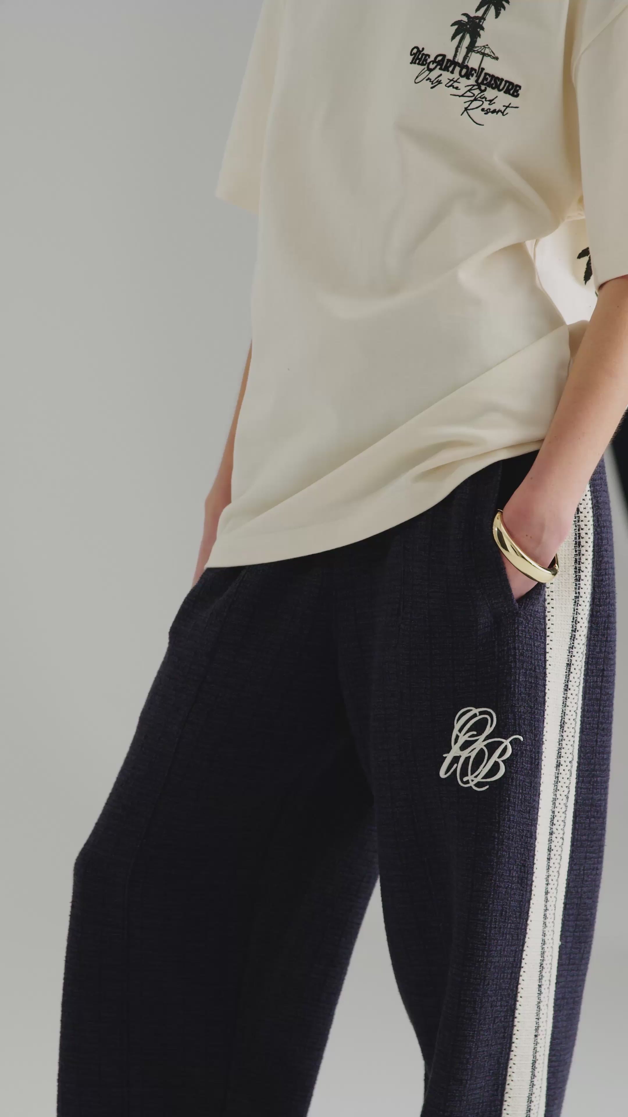 Die Port Lounge Pant ist aus einer strukturierten Strickkonstruktion gefertigt, die Struktur bietet und gleichzeitig für mühelosen Komfort sorgt. Der tiefe Navy-Ton spiegelt die Ruhe des offenen Wassers wider und bildet die Grundlage der La Mer Blanche-Palette.