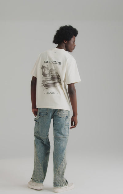 Das Riviera Charter T-Shirt ist eine Hommage an die Yachthäfen und privaten Liegeplätze der Riviera und fängt den ruhigen Glamour der von Yachten gesäumten Häfen und sonnenverwöhnten Fassaden ein. Als Teil der La Mer Blanche-Kollektion verbindet es klassische Illustrationen mit gehobener Verarbeitung.